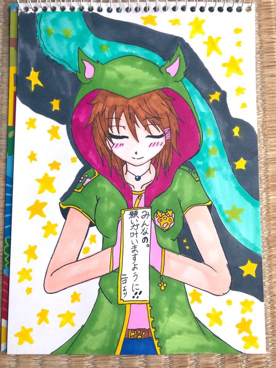 4 20 皆さん今日一日お疲れ様です。 かずにゃんです(๑>◡<๑) 今日は七夕🎋ですね。 皆さんは短冊にお願いごとしましたか? 今日のイラストは七夕のイラスト描いてみました。 イラスト観てくれてありがとうございます😊 22/07/07 18:28