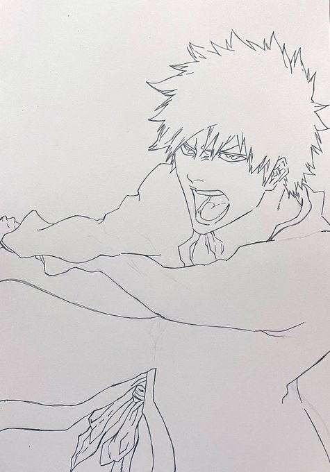 黒崎一護 ペン描き終了。これから色塗りだぁ。 #BLEACH #絵描きさんと繋がりたい