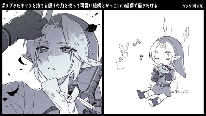 #リプきたキャラを持てる限りの力を使って可愛い絵柄とかっこいい絵柄で描きわける リンク/時のオカリナ