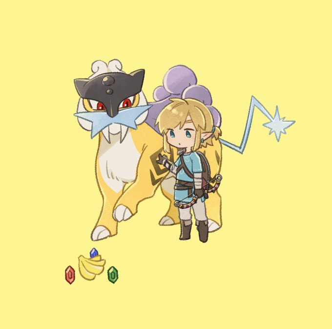 あけましておめでとうございます!!!これは最近ブレワイとポケモンにハマった妹氏にあげるポチ袋用に描いた絵