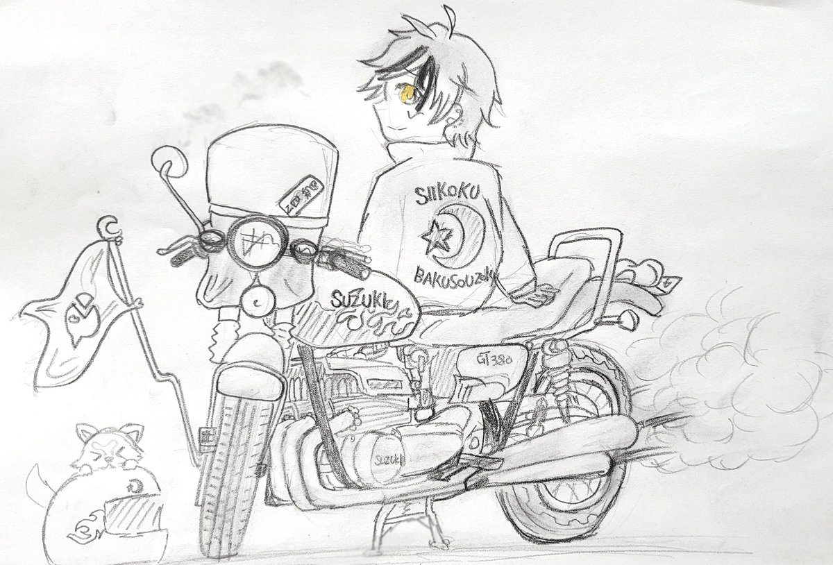 推しがバイクにハマったらしいので、Switch無い代わりに落書きしてた #漆黒の水鏡
