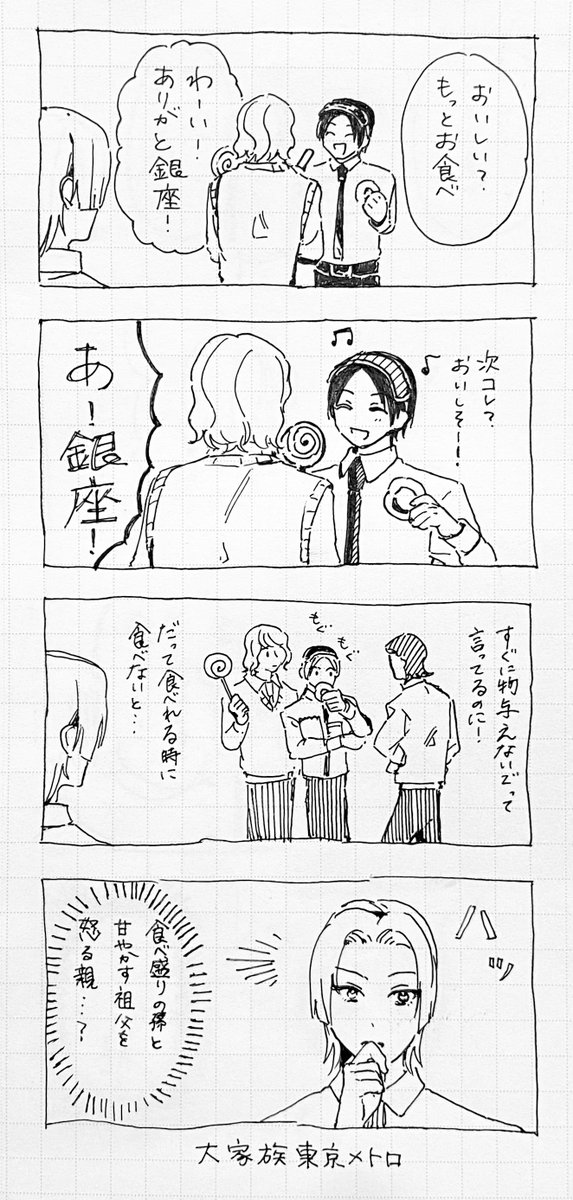 G様とNちゃんとTの関係がこうだったらいいなっていう妄想 最後のセリフ潰れちゃったけど「食べ盛りの孫」って書いてあります!