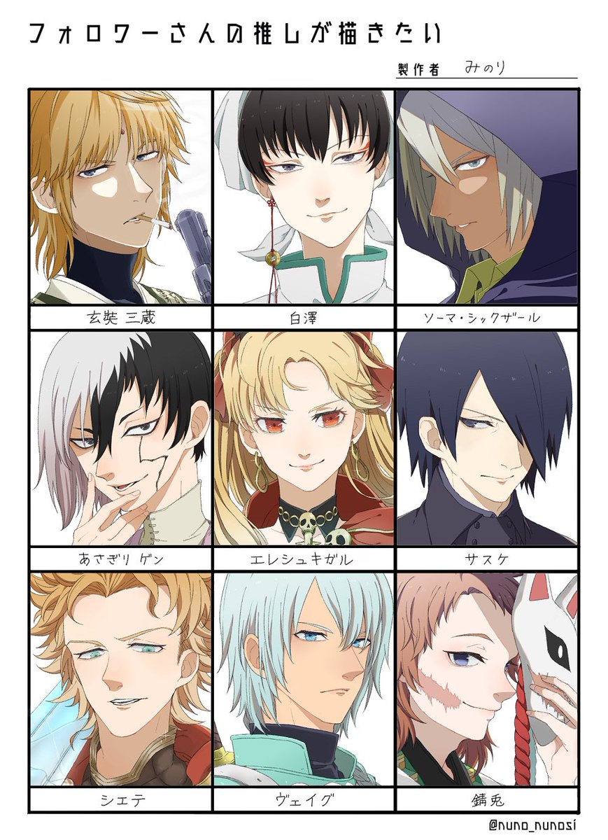 大変お待たせしました!!!!みんな別ジャンル&初描きで新鮮でした😊フォロワーの皆様ありがとうございました!! #フォロワーさんの推しが描きたい