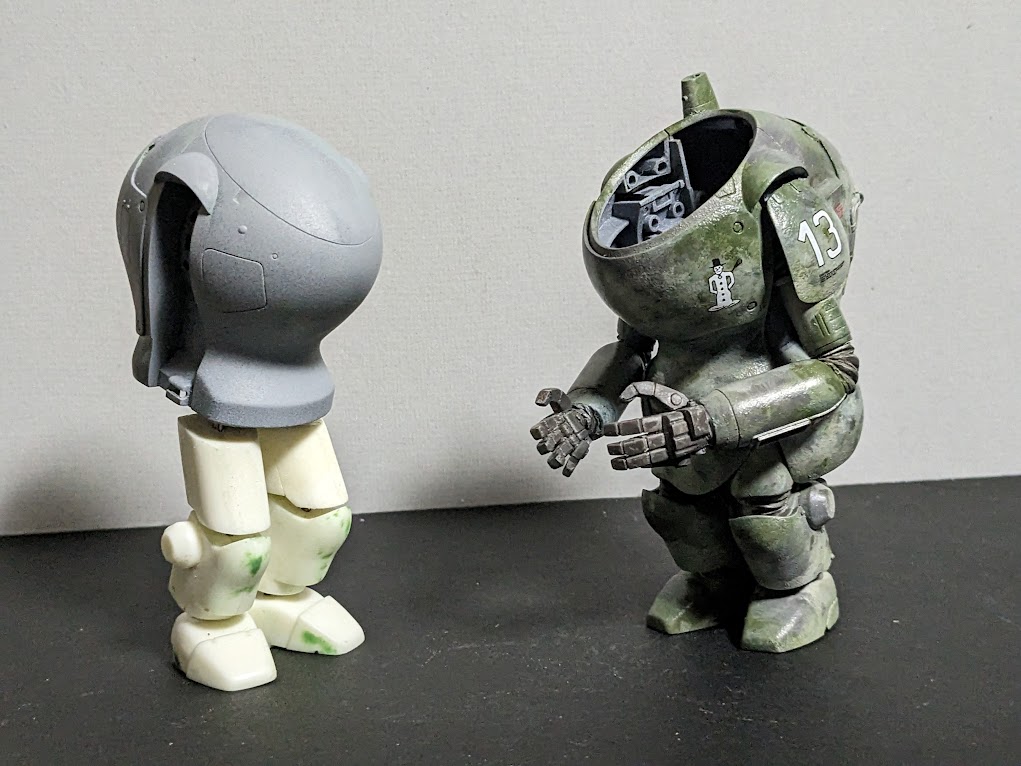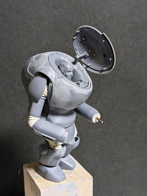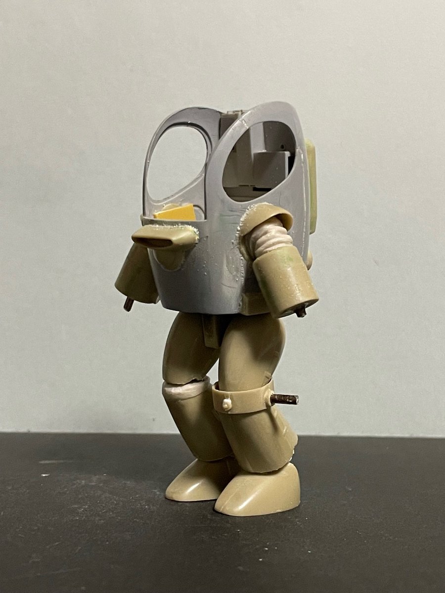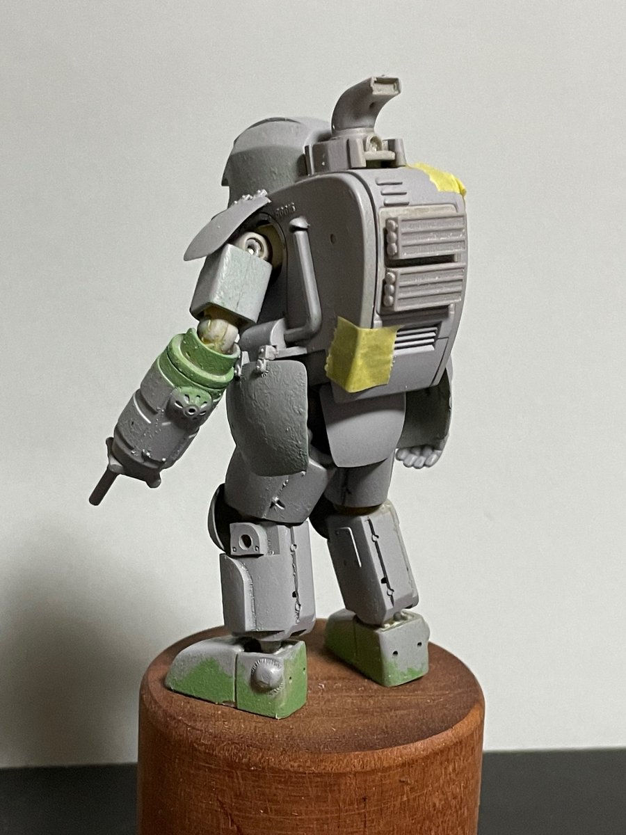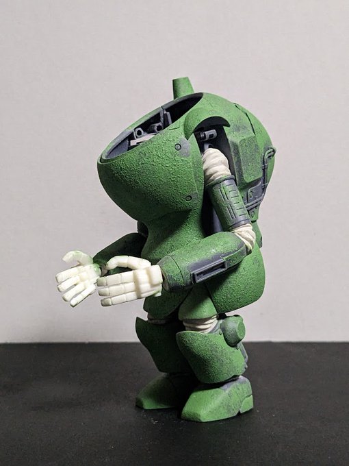 もたもたしてる間にNITTOベースのラビットが組み上がってしまった。 いつも複数同時進行させるから 間違えてサフをぶっかけたりするのさ 真に受ける人はいないと思うけど、 グスタフ腕は俺設定ね #マシーネンクリーガー