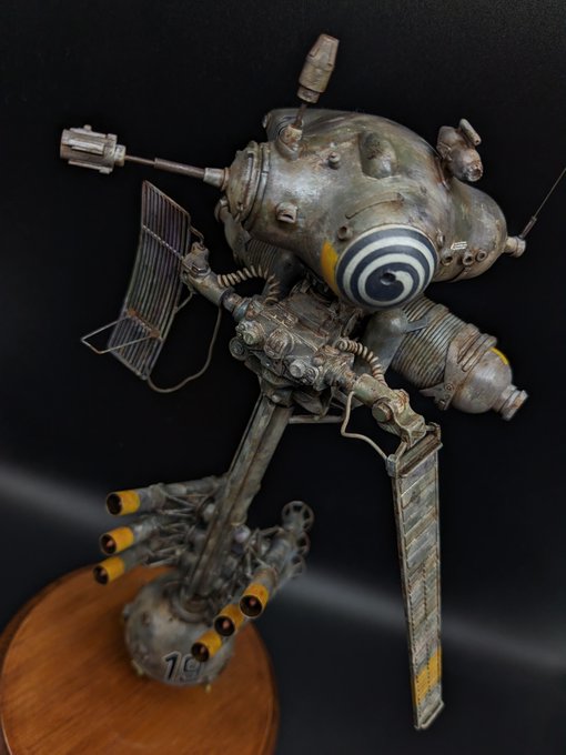 NITTO 1/20 KRACHENVOGEL 完成! 希少な絶版キットだが、 パーツが数点欠品していたジャンク品だったので気楽に作れた。 完品だと作らずにしまっとくくせに ジャンク品は完成させる。 考えてみればおかしな話だ #筆塗り #マシーネンクリーガー #maschinenkrieger