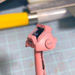 0 2 頭横のコックピットハッチが 型抜きの都合上なんかな?歪んでるので これも削り飛ばしてコトブキヤのネジモールドに交換 今回のサーフェイサーはピンクを使ってみまーす #HGUC #リックディアス #ガンプラ 20/03/29 18:09