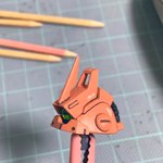 3 19 頭部内蔵のバルカンファランクス 砲身に穴が開いてないのでピンバイスで開口します 0.3mmで中心に当たりつけて0.5mmで開口 0.8mmで先の方だけ穴を広げて 丸モールドはたぶんセンサーと思うので とりあえず削り飛ばし スジボリ堂の 微美鬼斬の掘削力はいいよ! #HGUC #リックディアス #ガンプラ 20/03/29 08:48