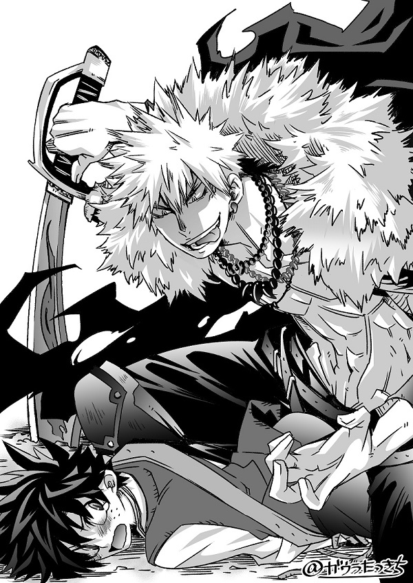 勝「じゃあちょっとくらい褒美寄越してもバチ当たらんだろが文句言うな!」 デ「全然ちょっとじゃないよね!!??」Σ #勝デク版深夜のお絵描き一本勝負 「夏休み」大遅刻申し訳。 #勝デク #hrak【腐】