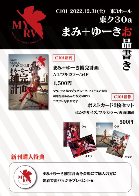 冬コミ頒布予定のエヴァンゲリオン マリ・アスカ写真集 【まみ+ゆーき補完計画】 無事入稿いたしました‼︎ たくさんの人に見ていただきたいです♡ よろしくお願いします✨ 本文50p!お楽しみください✨ 早く現物見たくてわくわくだ〜。 webcatalog-free.circle.ms/m/Circle/16805… #C101 #C101新刊