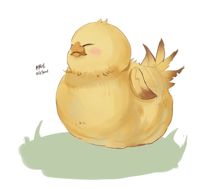 Day91/100 cute bird!!!fat Chocobo!!!!!!!!!!!!!!!! WIP #100日チャレンジ #digitaldrawing #FF14art #FFXIV