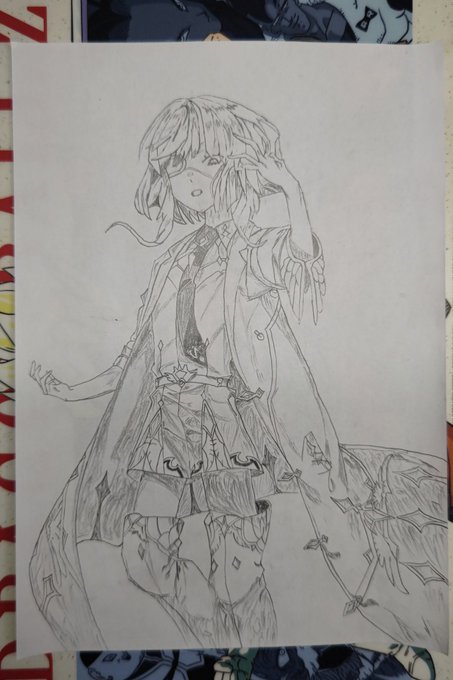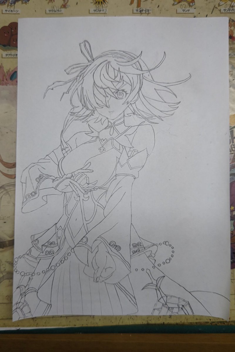カグツチの下書きが終わった〜😅 #白猫プロジェクト #白猫お絵描き