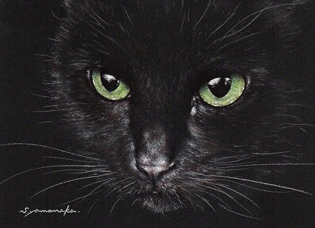 現在、東日本橋のギャラリー”ねこの引出し”さんで開催されている「黒猫展」に出品しています。 パステル画作品10点とポスとカード。 黒猫ファンの皆さん、ぜひ! 20日まで(14・15はお休み) 出品作から「若草色の瞳Ⅲ」をご紹介!