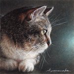 18 268 久し振りに元さんの横顔を描きました。7月に開催されるギャラリー山猫屋さんに企画展「猫の肖像展」に出品します。 同じポーズを異なった描法で描いてみようと思います。 先ずはこの擦筆彩色画法で・・・。 『白藍の光』パステル(擦筆彩色)14cm×14cm 22/05/17 17:42