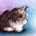 久し振りに元さんの横顔を描きました。7月に開催されるギャラリー山猫屋さんに企画展「猫の肖像展」に出品します。 同じポーズを異なった描法で描いてみようと思います。 先ずはこの擦筆彩色画法で・・・。 『白藍の光』パステル(擦筆彩色)14cm×14cm