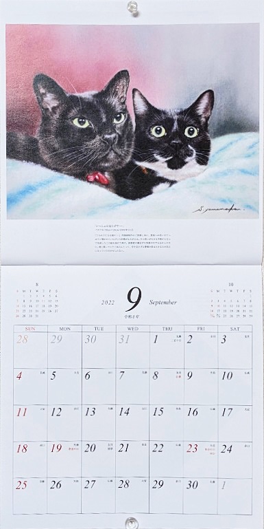 9月のカレンダーの作品は肖像画として描かせていただいた『 いっしょに見上げて・・・』(パステル 32cm×24cm)です。