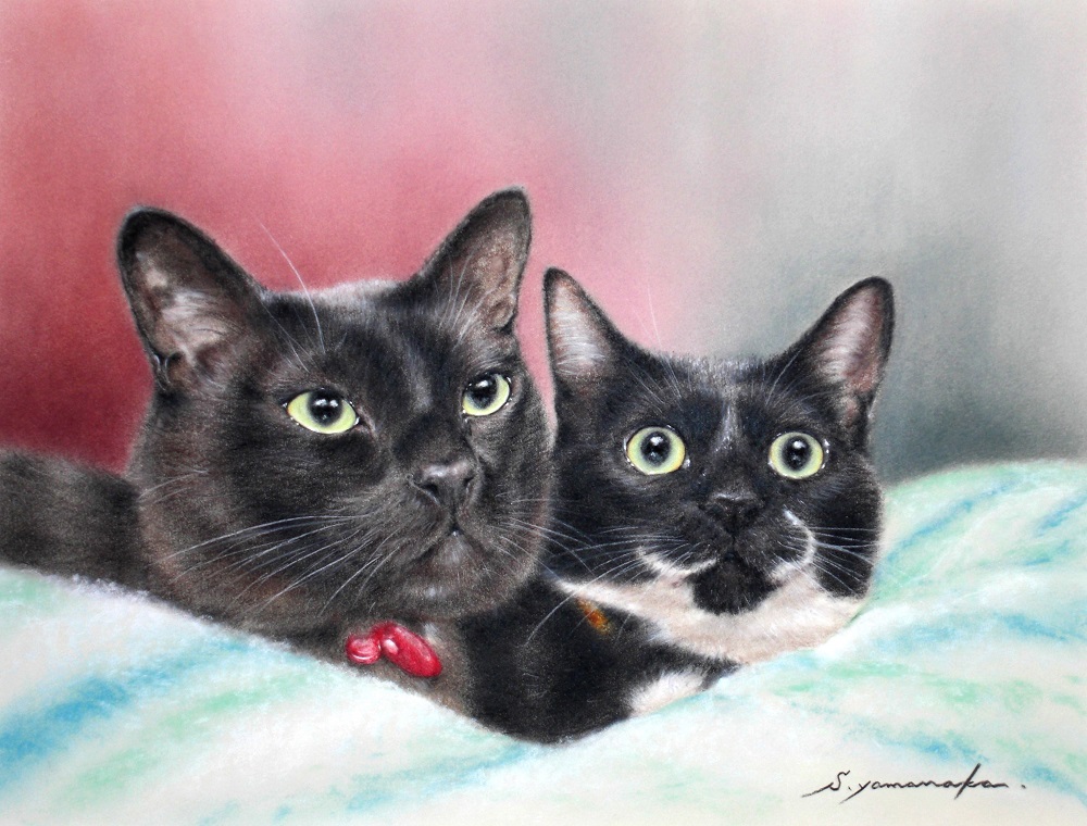 久し振りになる新作のご紹介です。 肖像画として描かせていただきました。 モデルのお名前は「みと」さん。 『安らぎの時間(とき)』 パステル 32cm×24cm #パステル画 #猫の肖像画 #山中翔之郎