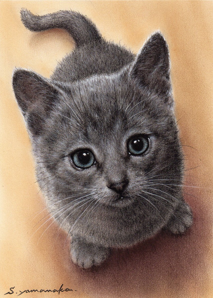 ロシアンブルーの子猫の無垢な瞳を描きました。 この作品も横浜個展に出品します。 搬入までいよいよあと一週間・・・。 台風が来ないことをただただ祈るばかりです。 『 無垢な瞳 Ⅲ 』 パステル 14.5cm×20.5cm