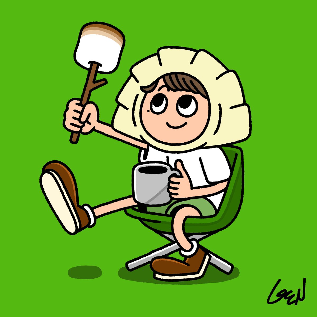 友のアイコン絵描かせてもらった 餃子!アウトドア!