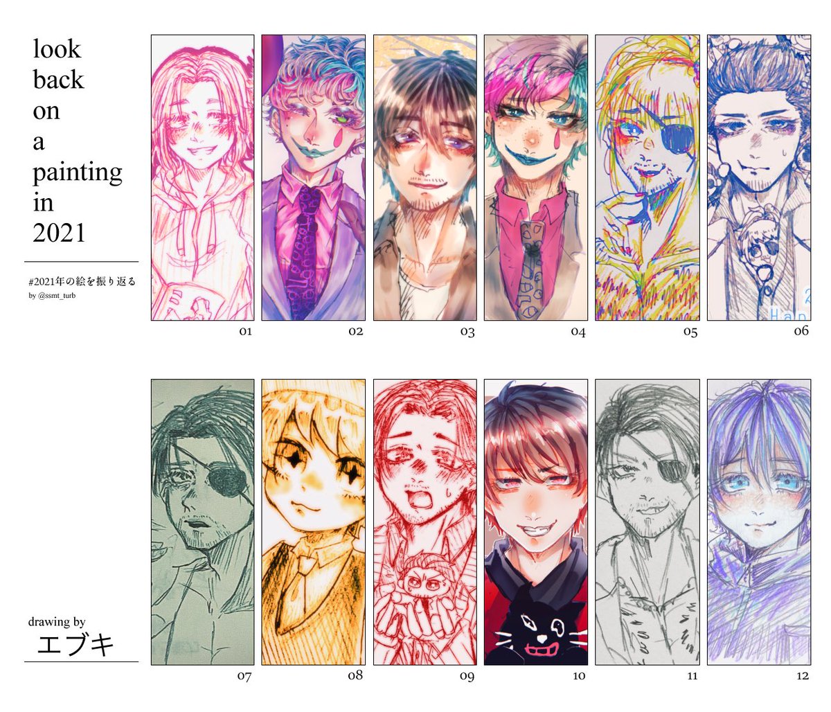 #2021年の絵を振り返る テンプレお借りしました。 今年はデフォルメ絵を模索するためにバカクソ描いたのでふたつに分けてみました。 来年も頑張ってかくどー!!