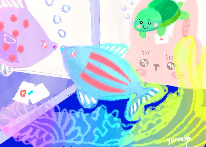 郵便で〜す🐢💌 #illustration #ゆるいイラスト #イラスト好きな人と繋がりたい #絵描きさんと繋がりたい #うさぎ と #かめ