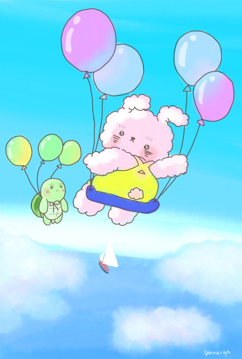 世界一周バルーン旅出発進行🎈 #illustration #イラスト #みんなで楽しむTwitter展覧会 #絵描きさんと繋がりたい #うさぎ #かめ