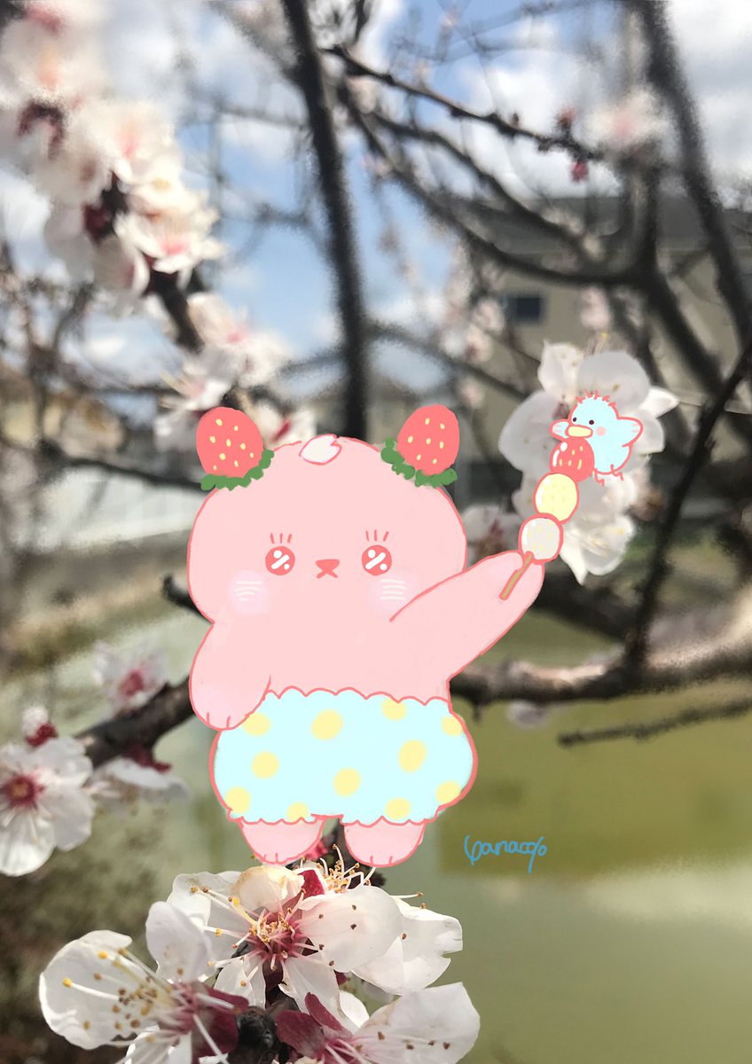 2 22 花よりいちご🍓🌸 #illustration #イラスト好きな人と繋がりたい #strawbear 22/04/03 21:30