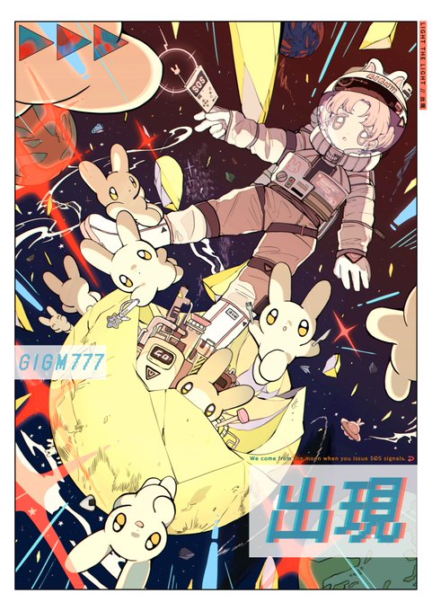 ▷LIGHT THE LIGHT 月に住むうさぎと謎の宇宙服少女。地球から飛んでくるSOSメッセージを受信すると、月がパカリと割れそれぞれの準備を済ませた彼らがすぐさま助けにやってきてくれるとかこないとか。助けられた人々は揃ってこう言う。「月から本当にうさぎが出現した」 #illustration #出現画廊