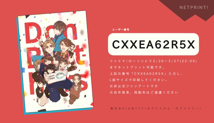 ✩ネットプリント ファミマ/ローソンで登録しました。 ユーザー番号【 CXXEA62R5X 】 2/26〜3/27(22:00)まで、こちらのイラストがL版推奨でネップリ印刷可能です!よろしくおねがいします!ʕ•̮͡•ʔ ※非公式ファンアートです #ドンブラザーズ #FANART #ドンブラザーズ最終回