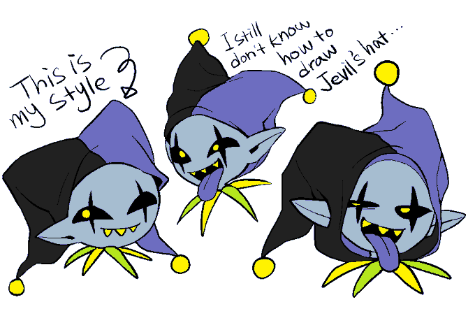 #100ๆฅใใฃใฌใณใธ #DELTARUNE #jevil 016 So difficult... ๐ค Two of my favorite hat styles & The hat style that I draw often.