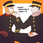 お題:祝!公式ファンブック発売 ファンブックである意味一番慌てた情報はこの2人の誕生日…まさか当日だなんて……おめでとう!!🍊🍊 #ゴールデンカムイ版深夜の真剣お絵描き60分一本勝負 #二階堂浩平・洋平誕生祭2020