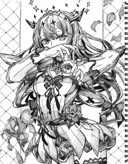 見てしまった挙句、イイネしちゃったからなぁ…仕上げに黒ペンだけの絵なんだけれどあげます。 この手のタグは素晴らしいのばかりで ついつい色々見てしまう #このタグを見た人はラフ画とその完成絵を見せる
