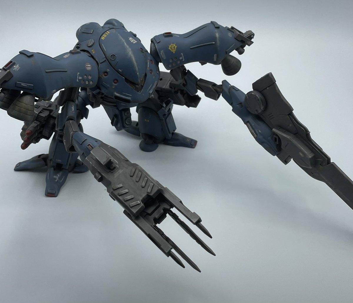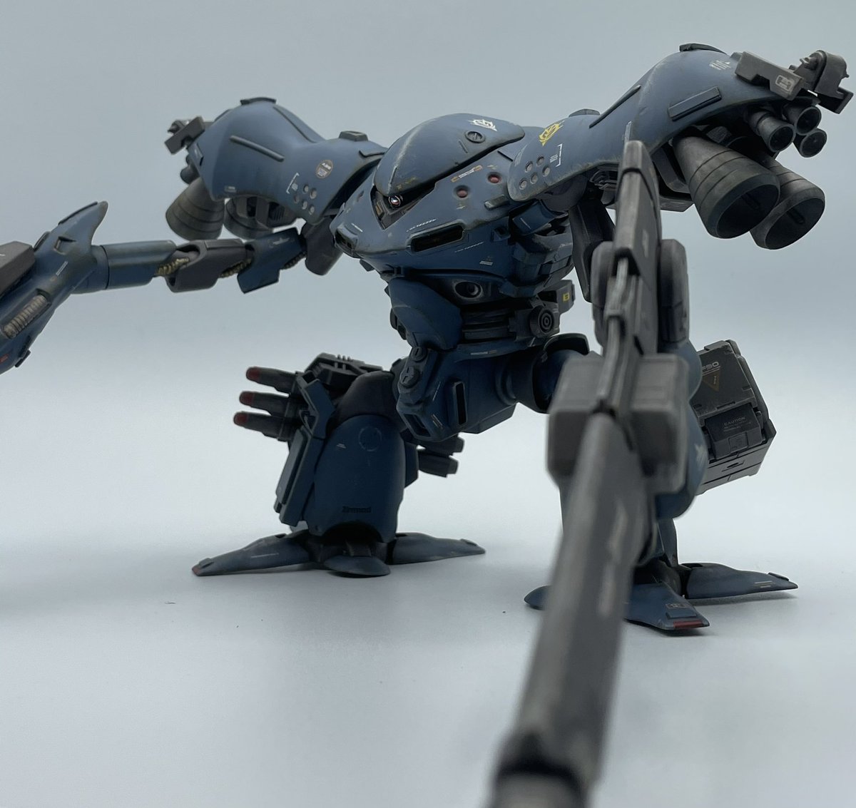ハイゴックようやく完成。 前後に延長して海産物らしさを盛ってみました。 左手には諦め切れないアーマードコア新作発売の思いが詰まってます。 #ガンプラ #ガンプラはどんな自由な発想で作ってもいいんだ #ガンプラの画像貼るとRTされると聞いて