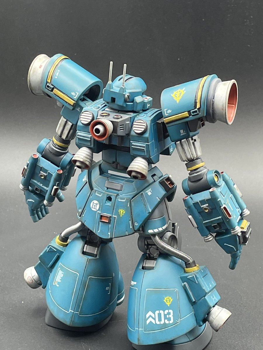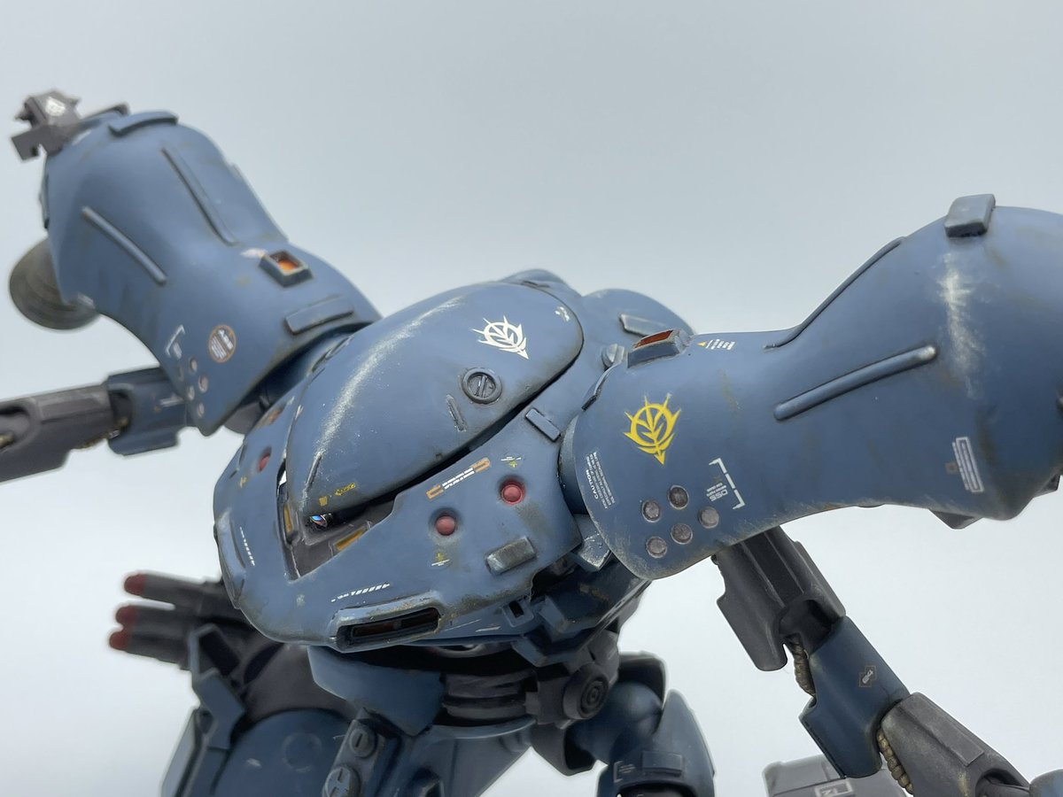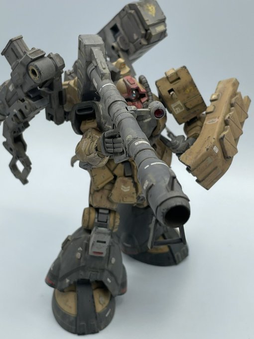 モノアイをLEDにするか最後まで悩みましたが、自重の関係で断念。 肩と胴体に可動域を増やしたはずが塗装ハゲが怖くて結局あまり動かせない問題。 #ガンプラ #ガンプラはどんな自由な発想で作ってもいいんだ