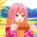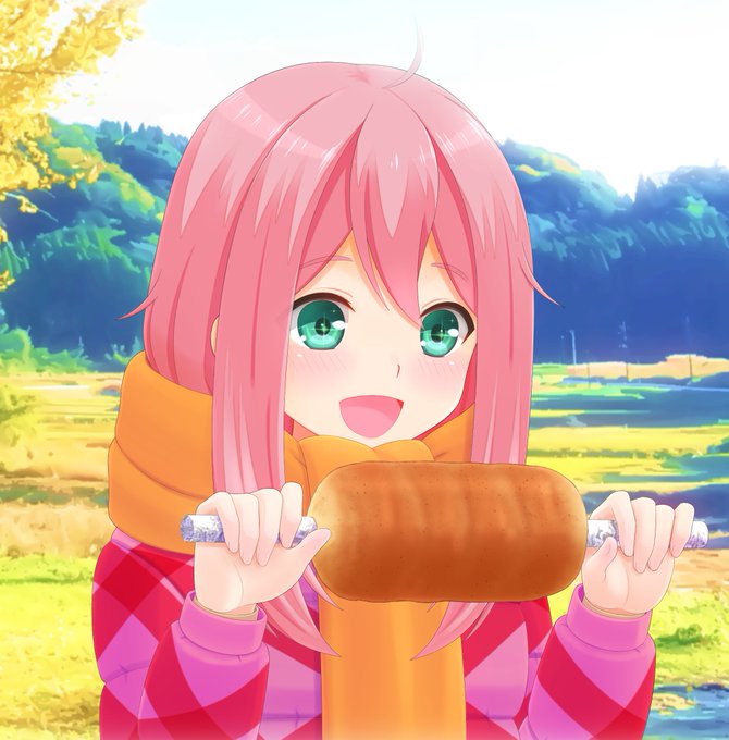21 67 #今月描いた絵を晒そう これ一枚。肉じゃなくてバウムクーヘンです。 #ゆるキャン 22/03/29 20:54