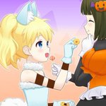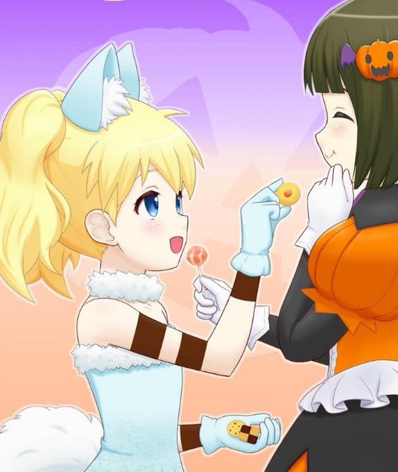 17 51 ずいぶん前に描いたハロウィン絵。原作通りの衣装だけどもモノクロなので色がよく分からない。 #きんいろモザイク 22/10/31 21:58