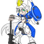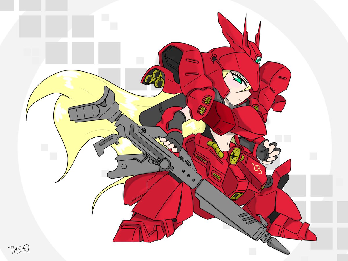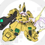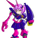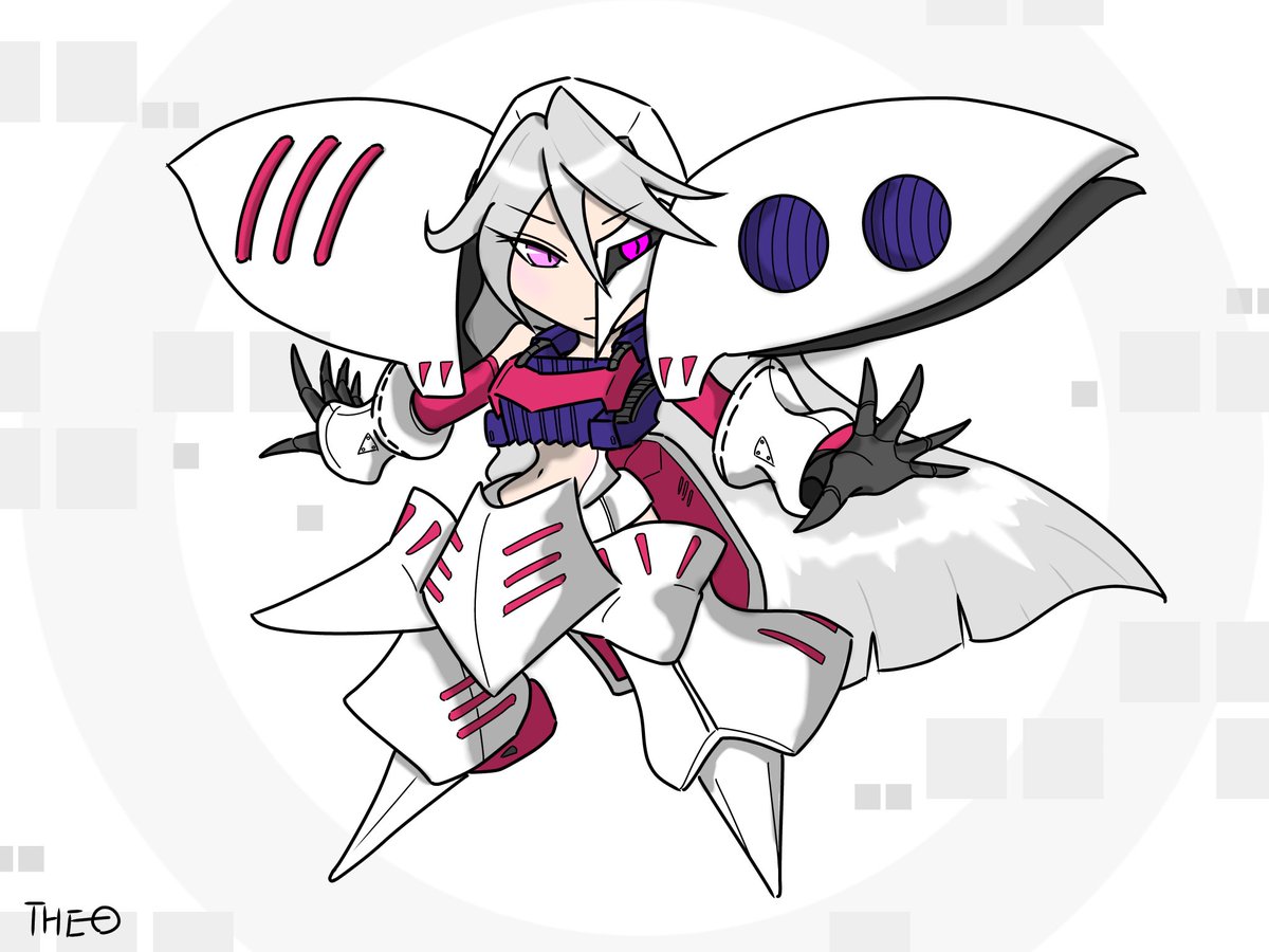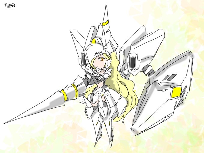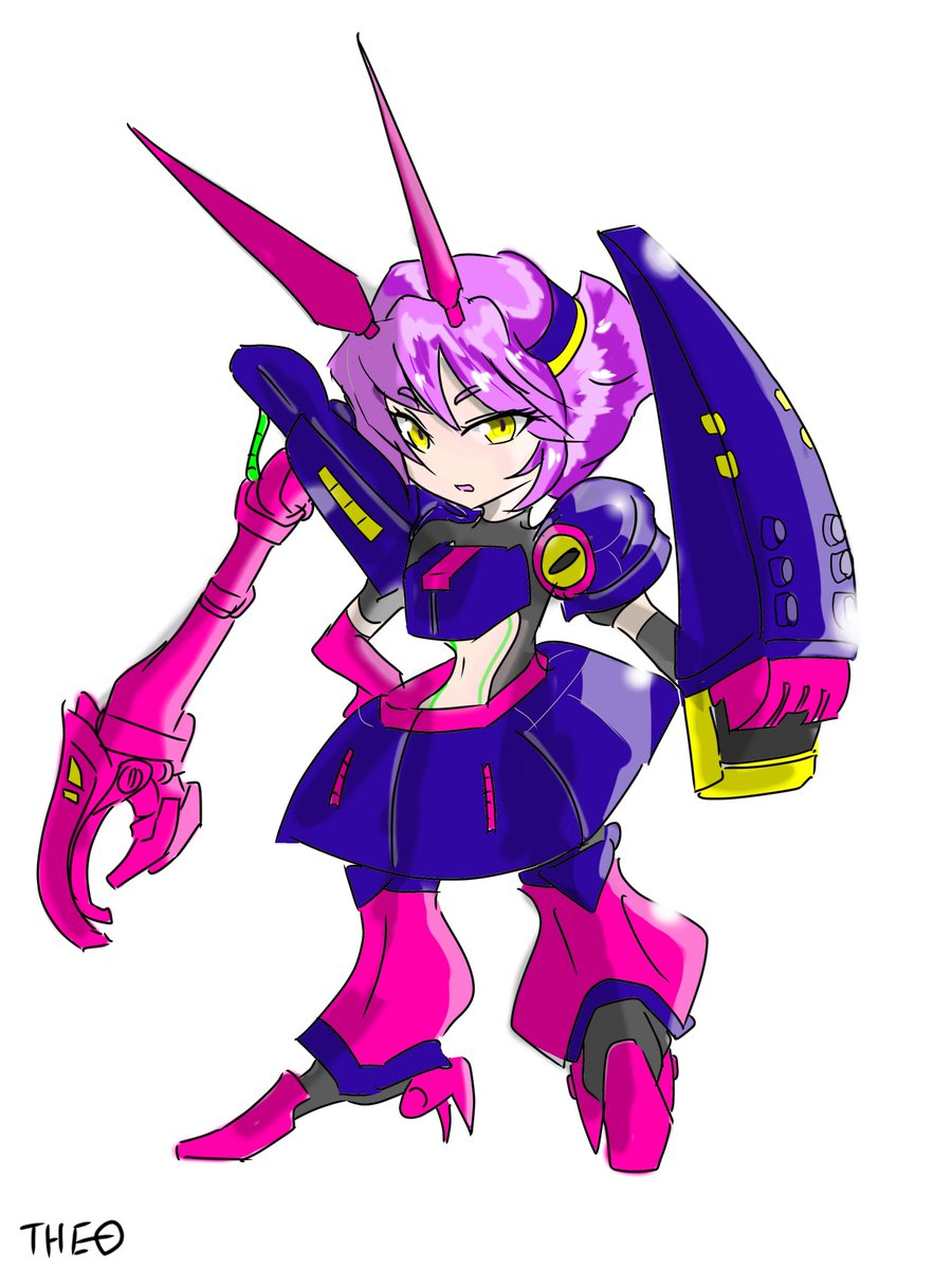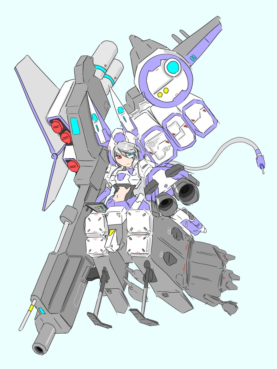 オリジナルメカ少女 full-armd type『月花-GEKKA-』 月花ちゃんロールアウトです⭐ 左手のエネルギータンクの先の赤い部分を右手の2連装ビームキャノンの穴の部分に差し込む事でフルチャージショットが可能になるという仕様ですw(*´艸`) #オリジナルキャラクター #創作イラスト
