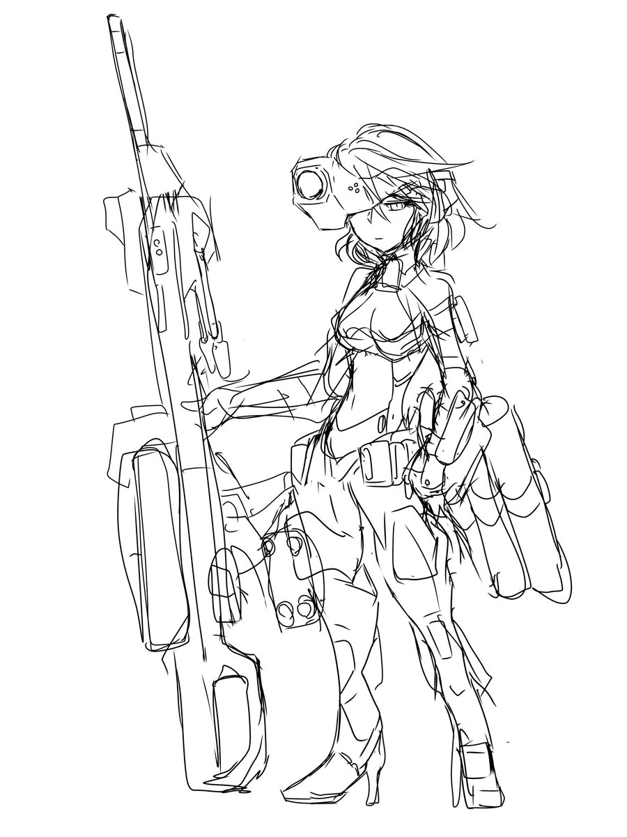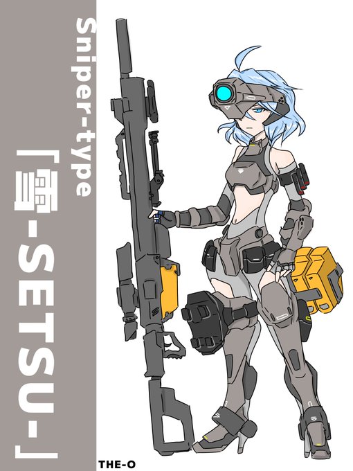 オリジナルメカ少女 Sniper-type『雪-SETSU-』 完成しました〜⭐ 久々にきっちりと仕上げw モチベーション維持の為、細かく刻んで進捗UPしておりました💦 某プラモパッケージ風でw(*´艸`) #オリジナルキャラクター #創作イラスト