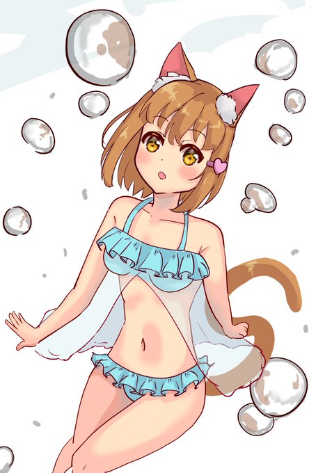 12 42 水着なうちの子ミミちゃん!🐈️🏖️ #イラスト #ケモミミ 23/08/17 13:23