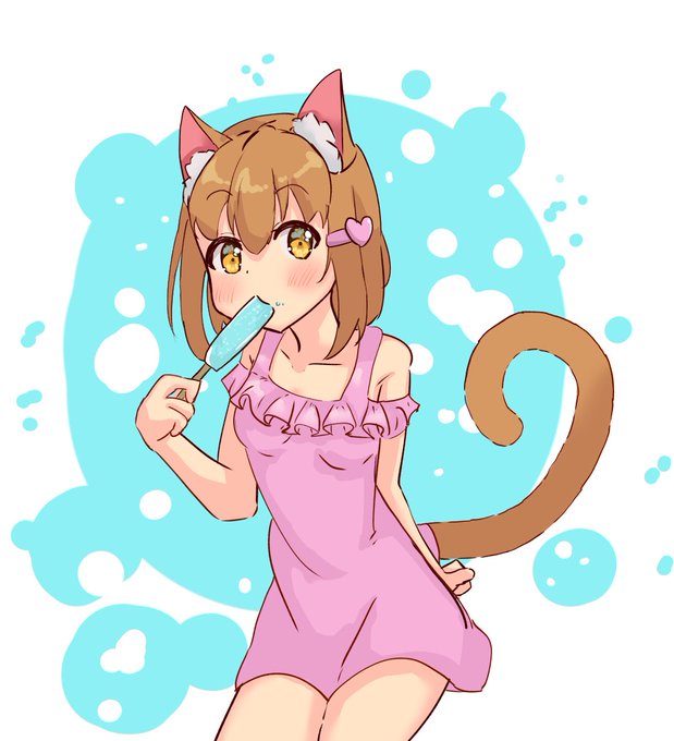 暑いのでアイス食べてるミミちゃん🍨🐈️ #イラスト