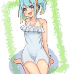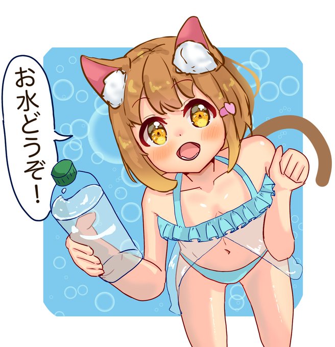 あついので水着なうちの子ミミちゃん! 背景は素材を使いました #イラスト