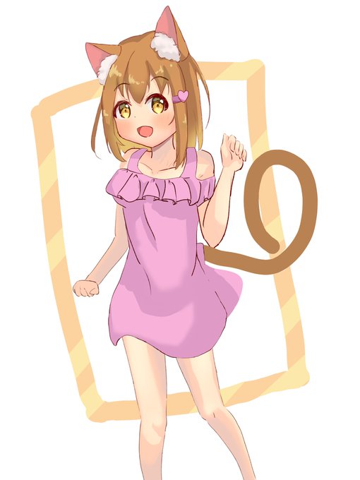 水着なうちの子ミミちゃん!🐈️🏖️ #イラスト #ケモミミ