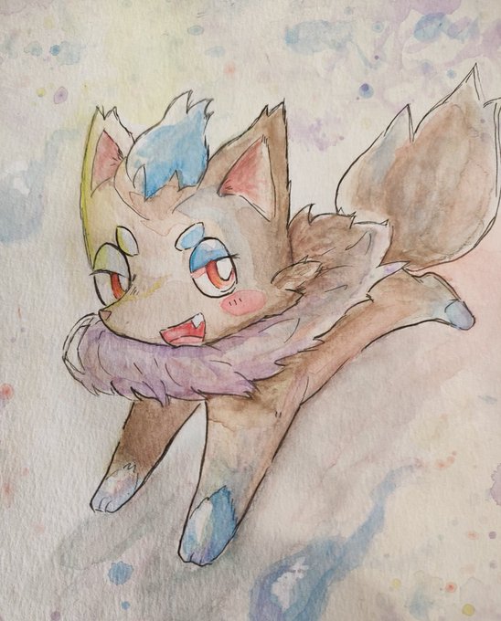 #ゾロア #ポケモンイラスト #ポケモン #水彩 #落書き 野生のゾロアが現れた!!!
