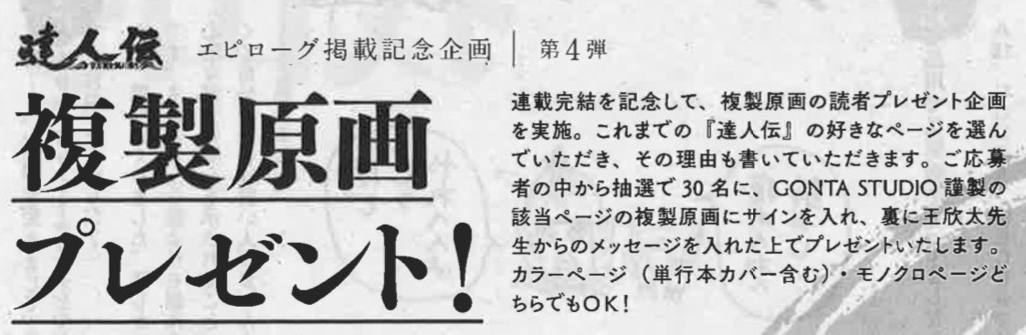 現在発売中の漫画アクション、「達人伝」エピローグ第一話が巻頭カラーで掲載されております。合わせて、1話から90話まで、15巻分が無料公開されております🐲(comic-action.com/episode/485600…)5月26日まで!丹の三俠の炎の命と受け継ぎし者の物語。どうぞお見逃しなく!#達人伝 #漫画が読めるハッシュタグ