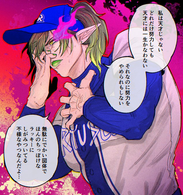 些細な事ですぐヘラり、スタミナもなく、一生懸命頑張っても投手として大事なところで安定せず監督や仲間をヒヤヒヤさせてしまう己の全てが不甲斐ない情けない疎ましいと呪いながら、神宮の9回裏で魔物と化す17歳男子高校生花畑チャイカの幻覚です #お花畑青空大写生大会 #にじさんじアルプススタンド