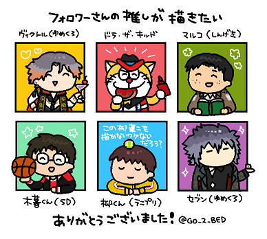 #フォロワーさんの推しが描きたい 6枠のうち半分私の推しだけど描いてて楽しかったです!ありがとうございました₍₍ ᕕʕ •ᴥ• ʔᕗ⁾⁾ twitter.com/GO_2_BED/sta…