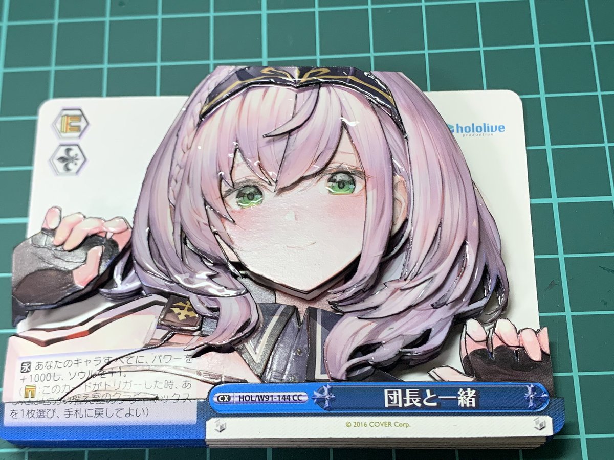 5 15 団長のシャドーボックス作りました 髪を全面的に光沢を出させました あと髪の重ねる順番を気にしながら作りました これがノエル団長の(物理的な)切り抜きって訳ですよ #シャドーボックス 22/05/03 03:33