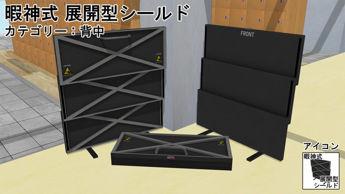 「暇神式 展開型シールド」配布します。 持ち運び可能な展開・設置型の個人用防弾シールドです。背中カテあります。 パーツエディットプラグインで畳むことも出来ます。 所々に粗があるかもしれません。 ux.getuploader.com/himaupl/downlo… #COM3D2 丼COM3D2
