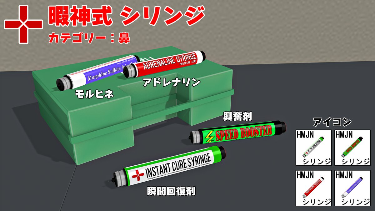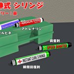 「暇神式 シリンジ」配布開始 FPS等で回復薬としてよく見るシリンジ(注射器)です。鼻カテに追加されます。 後方のボタンはボーンを組み込んであるので押し込むことが出来ます。 ラベル部分の改変用にUV画像付きです。 ux.getuploader.com/himaupl/downlo… #COM3D2 丼COM3D2