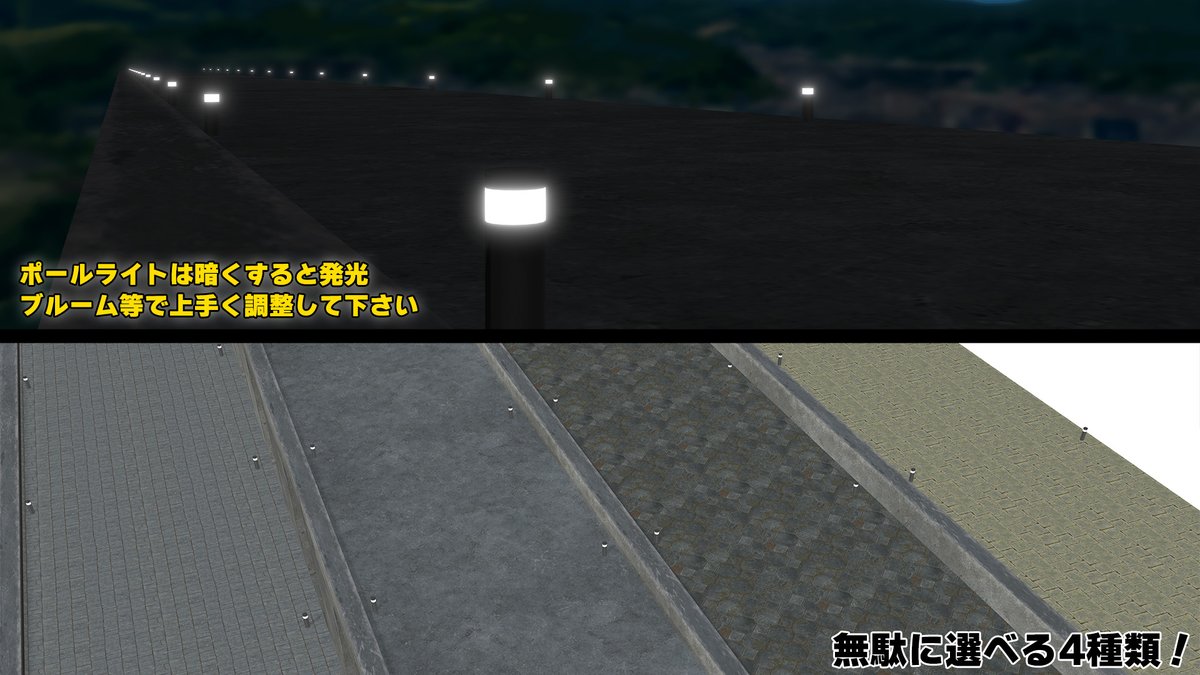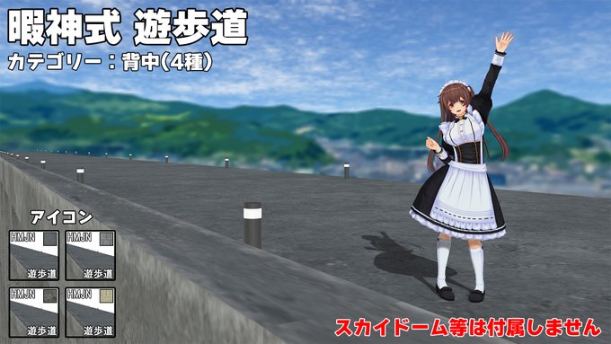 「暇神式 遊歩道」配布開始。 スカイドームとかベンチとかは付属しません。 ポールライトが光ります。歩道部分は無駄に4種類。 これ単体で端から端まで占領するくらいデカいです。 上手くやれば遊歩道以外の使い方も出来るかもしれません。 ux.getuploader.com/himaupl/downlo… #COM3D2 丼COM3D2