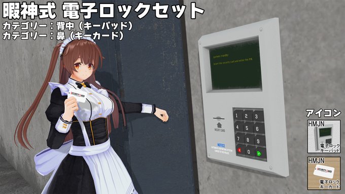 「暇神式 電子ロックセット」配布開始 電子ロックのキーパッド本体とキーカードのセットです。 キーカードはテクスチャ改変用にUV画像付属。 キーパッドもディスプレイ部分に文字入れ出来るように文字無しテクスチャ同梱。 ux.getuploader.com/himaupl/downlo… #COM3D2 丼COM3D2